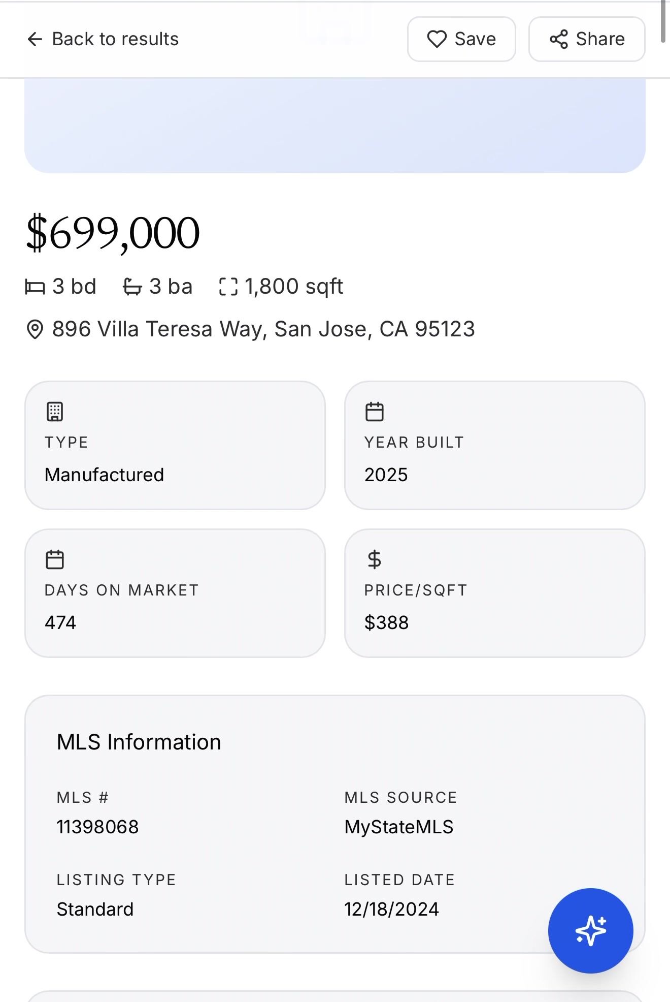 [{BECAUSE I am developing this in a shoestring budget, stead of paying huge MLS access fees, and Google Street Fees, I simply scrapped high quality images on the web within 5000 meters of MLS listing so that users can get a feel for the area. I can change that later when cash chauffeurs are full to be inclusive of realtor uploaded media but price wise and all of property and owner data, LIVE AND KICKING!}]