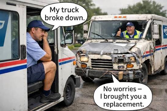 This is the same spray-tanned genius who spent years whining that the Post Office was rigged against him because of Amazon, ballots, or whatever conspiracy fit his tiny ego that day. Now he’s running the show and the fix for their “unsustainable model” is… screw the retirees so he can afford more fireworks and pretend he’s a wartime president. Classic low-energy hypocrisy from the guy whose own businesses filed for bankruptcy six times.