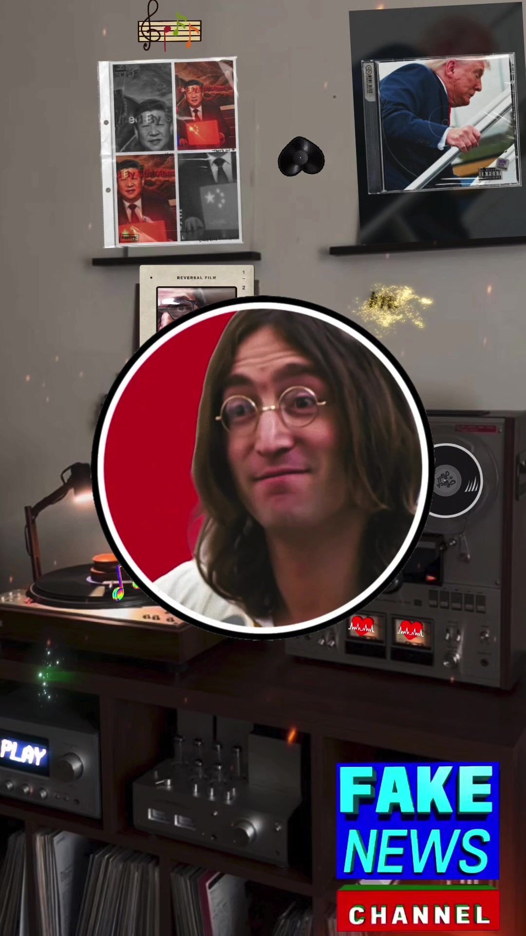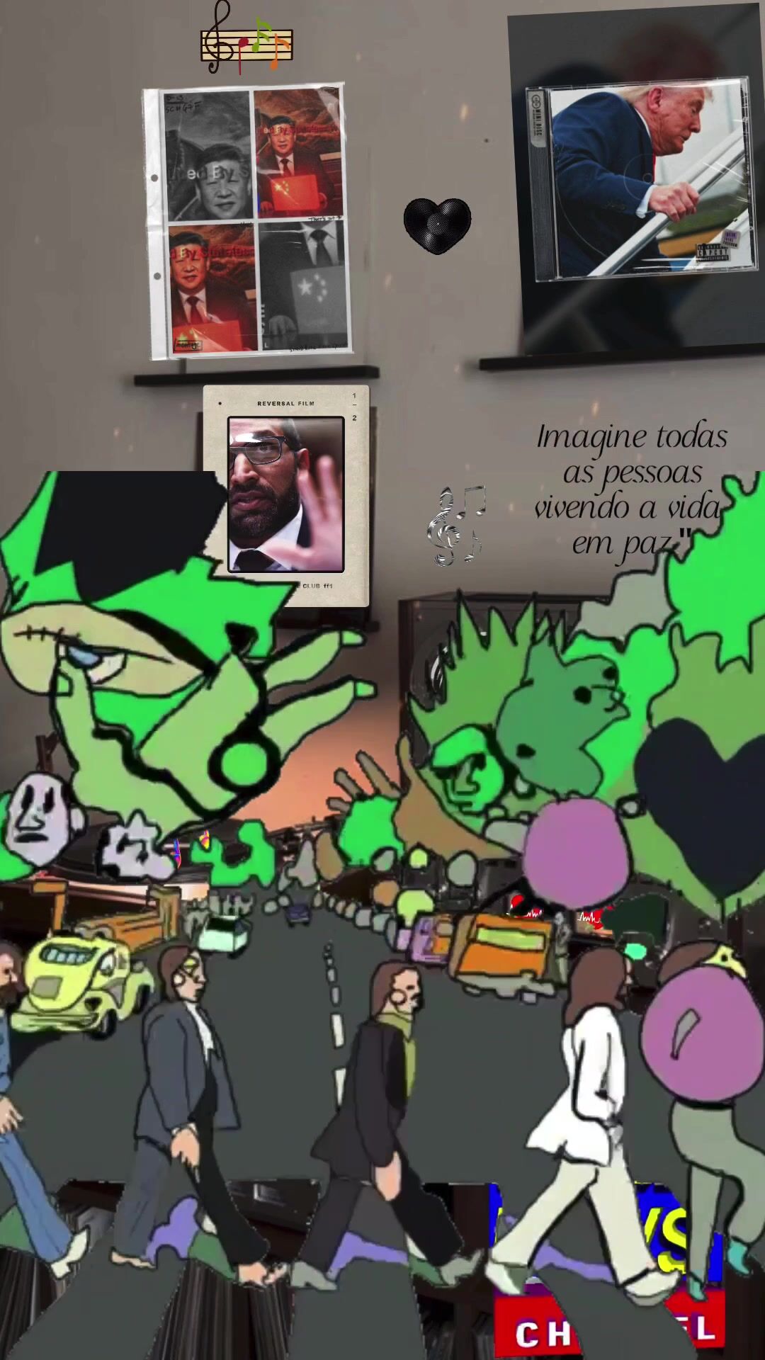 I made a John Lennon COW Apartment music studio to have saggy skinned Trump on the right side of the walk, China’s Xi on the left side, and Trump’s FBI psycho-boy Patel below that of Xi holding his OPEN HAND as in a STOP gesture but better warring states there is no stopping in the slightest…